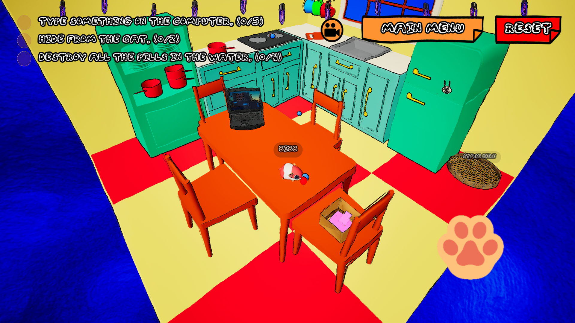 Your pet is left home alone and has to complete little task like gathering some sticks, or some yarn. Or go in some adventures through the neighborhood.